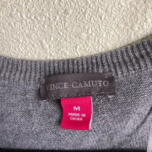 VINCE CAMUTO Gray V-neck Asymmetrical Stripe texture women sweater Size M