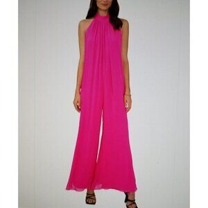 VINCE CAMUTO Halter Neckline Wide Leg Hot Pink Chiffon Jumpsuit Women's Size M