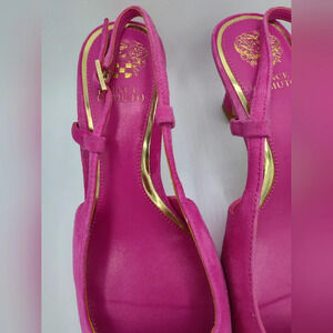 VINCE CAMUTO Hot Pink Suede Slingback Heels Size 9.5 Bold & Chic! 3" Kitten Heel