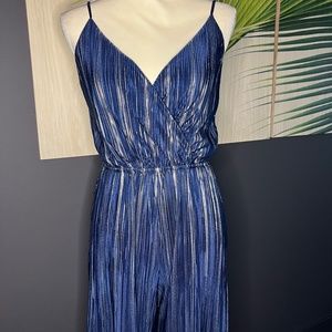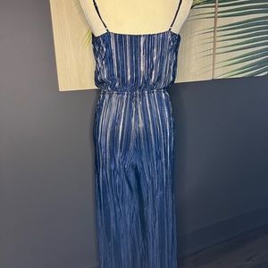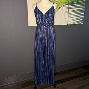 Head turner! Navy/Silver Shimmer Striped Jumpsuit!