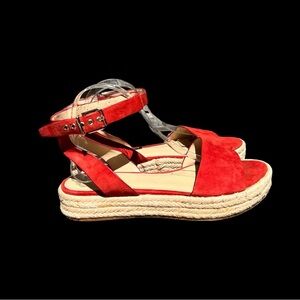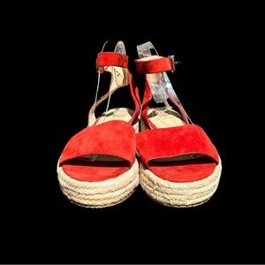 🌻VINCE CAMUTO Kathalia Red Hot Rio Flatform Leather Espadrille Sandals Size 9.5