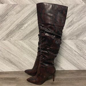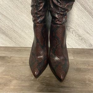 VINCE CAMUTO | Kentelli Ruched Boot Wine Snakeskin NEW