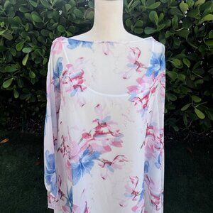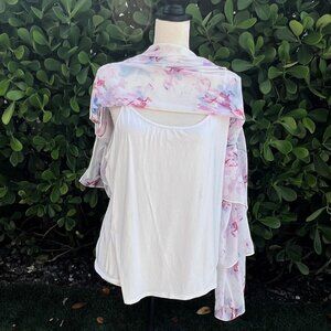 VINCE CAMUTO Kimono Sheer Floral Top Shirt with Camisole Peek a Boo Sleeve