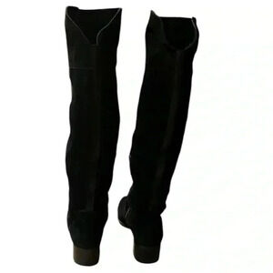 VINCE CAMUTO Kochelda Over the Knee Boot Black Suede Size 8. Beautiful and Chik Styling for Fall/ Winter. Featuring Almond Toe, Solid Vamp, Inner Side Zip Closure, Back Elasticized Back Panel, Pull-On Style, Lightly Padded Footbed, Stacked Heel, 19” Shaft Height,