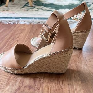 VINCE CAMUTO Lerra Camel Leather Espadrille Wedge Ankle Strap Sandal Sz 7M 37.5