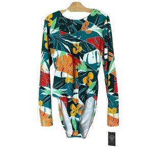 VINCE CAMUTO- Long Sleeve One-Piece Swimsuit Backless Multicolor Size 14 -NWT