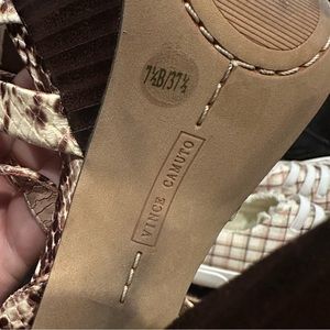 VINCE CAMUTO MINER BROWN SNAKE PRINT PLATFORM 70s STYLE SANDALS 7.5