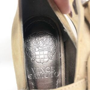 VINCE CAMUTO | Marcia Almond-Toe Ruffle Top Tan Suede Heels Women’s Size 8.5