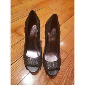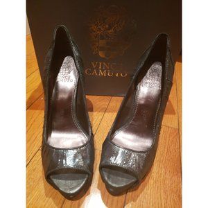 VINCE CAMUTO Metallic Silver Black MODA Platform Peep Toe Pumps size 7