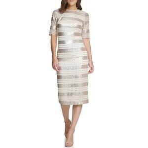 VINCE CAMUTO NEW $228 Sequin Stripe Midi Dress in Champagne Size 0