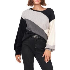 VINCE CAMUTO NEW $89 Eyelash Colorblock Sweater Heather Gray XXS