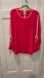 NWT AUTHENTIC VINCE CAMUTO LONG SLEEVE HOT PINK AND WHITE TRIM OPEN SLEEVES BLOUSE. SLIT SLEEVES & NECKLINE IS TRIMMED IN WHITE WITH A CUTE BOW AT THE END.