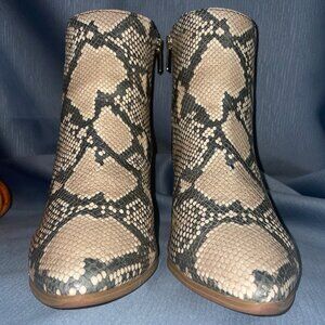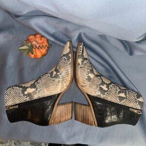 VINCE CAMUTO Natural & Black Snake Leather Pointed Toe Western Ankle Bootie GRASEM, VC-Grasem, Women Size 7m (Insole-10") Excellent, almost new condition