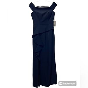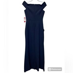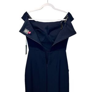 VINCE CAMUTO Navy Off The Shoulder Draped Column Gown Size 2