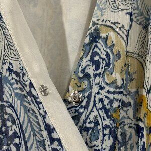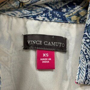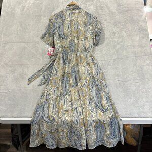 VINCE CAMUTO Paisley Print Wrap Midi Dress Sz XS Blue Yellow V Neck Collared NWT