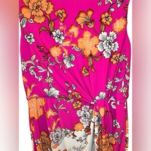 VINCE CAMUTO Pink Floral Sleeveless Knot Waist Fit & Flare Midi Dress - Size 12