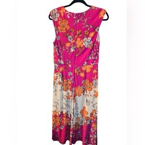VINCE CAMUTO Pink Floral Sleeveless Knot Waist Fit & Flare Midi Dress - Size 12 - lined - back zip