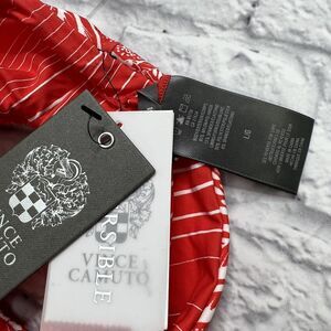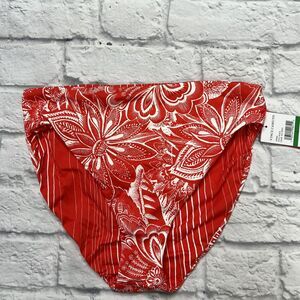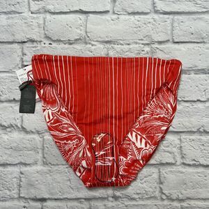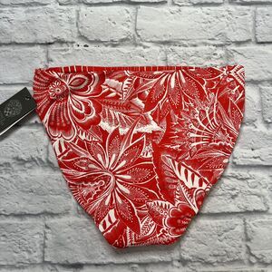 VINCE CAMUTO Red Floral Stripe Bikini Reversible High Leg Swimsuit Bottom L New