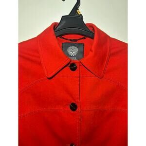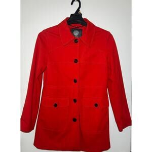 VINCE CAMUTO Red Pea Coat Rayon Blend Button Closure Collared Womens S