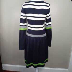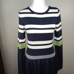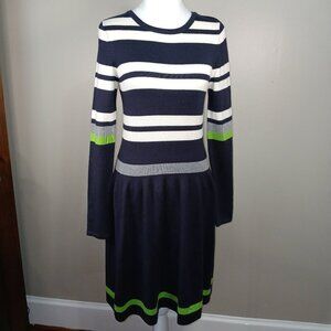 VINCE CAMUTO SWEATER DRESS NAVY BLUE AND GREEN LONG SLEEVE SIZE SMALL