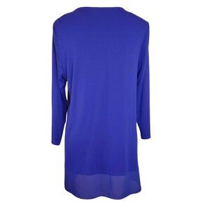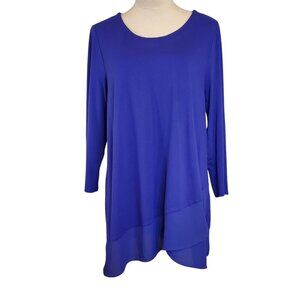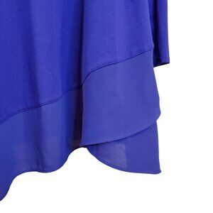VINCE CAMUTO SZ M Vibrant Blue Tunic Top w/Asymmetrical Sheer Overlay Hem 3/4 Sleeve