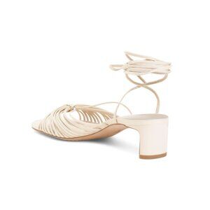 strappy design, cushioned footbed, faux leather finish, kitten heel