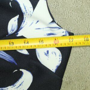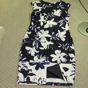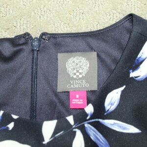 VINCE CAMUTO Scuba Round Neck Sleeveless Lined Navy White Floral Midi Dress Sz 8