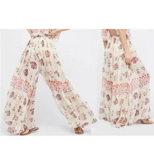 This VINCE CAMUTO Top is a size medium. Black blouse with a red floral print with green stems and leafs and another blue vine. Top is high low with the back being longer than the front.
