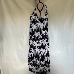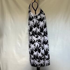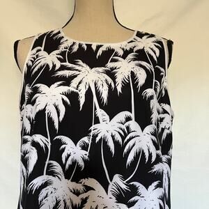 Black Vince Camuto Sleeveless Sheath Knee Length Dress with White Palm Tree Allover Print
