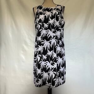 VINCE CAMUTO Sleeveless Sheath Dress Size 8 Black Palm Tree Beachy Cruise Travel