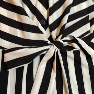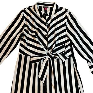 VINCE CAMUTO Striped Tie Front Dress Black White Stripe Shirt 3/4 size Medium