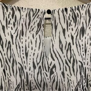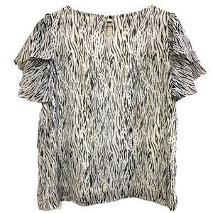 VINCE CAMUTO Summer Heat Blouse Women’s Medium White Black Animal Print Lined Flutter Sleeve