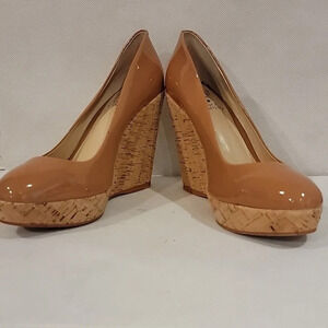 Vince Camuto tan patent leather wedge heels (sz 8-1/2) The heels are 4-1/2" in height. The shoes are in excellent condition. Please see all pictures.