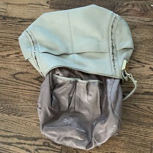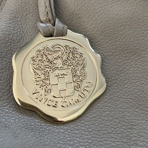 VINCE CAMUTO TAUPE & GOLD STUDDED HANDBAG