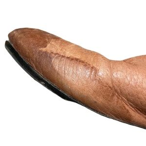 The toes are distressed. There is a water stain on the left side of the right boot (shown in photo).