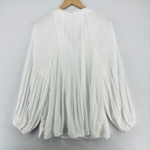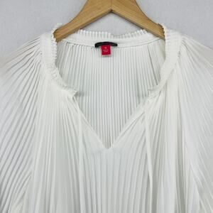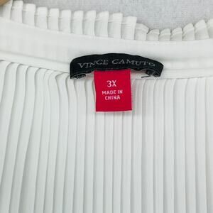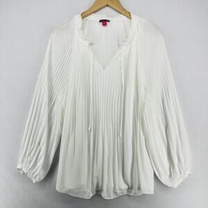 VINCE CAMUTO Top Womens 3X Plus Crepe Pleated Blouse Tie Neck Double Layer White