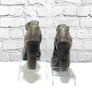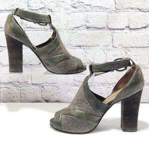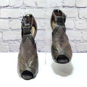 Everyone has a go-to statement piece. These could be yours! Unique design, soft leather, and cushioned insole make these heels the perfect choice for you! These heels have brown, tan, green, and gold color tones. Also, the pictures don't do it justice! It's hard to capture the color.