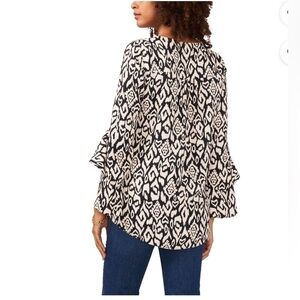 VINCE CAMUTO Unlined Crossover Hemline Printed Bell Sleeve V Neck Blouse
