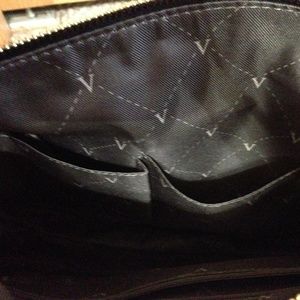 Interior: 7 1/2" zippered compartment; 2 slip pockets (2 1/2" & 3 1/2" wide)