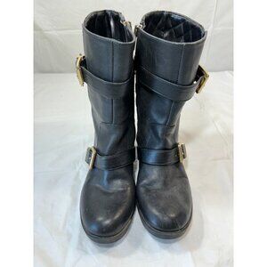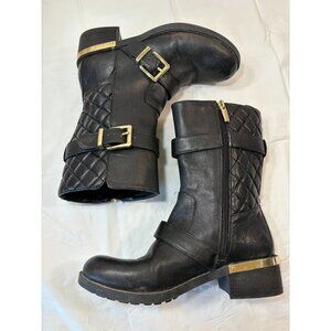VINCE CAMUTO WILAMENA QUILTED BLACK LEATHER GOLD BUCKLES BIKER BOOTS Size 5.5 M