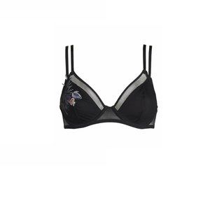 Overlaying mesh provides a floral-detailed underwire bra with the sense of an optical illusion—but this soft and feminine bra isn't too good to be true.