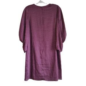 VINCE CAMUTO Women's 2 2P Petite Trinket Shift Dress - Wine, Polka Dot, Back Zipper. Ruched Sleeves, Lined, Polyester