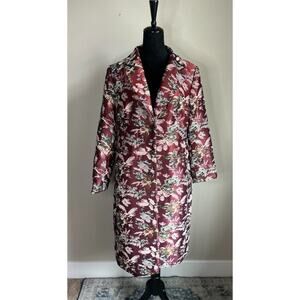VINCE CAMUTO Women's Floral Tapestry Burgundy Topper Mid Length Jacket Size 14