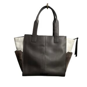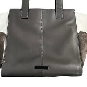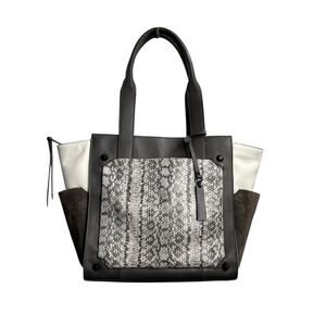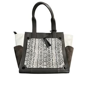 VINCE CAMUTO Women's Gray LeatherSuede Snakeskin Pocket Leather Tote Bag