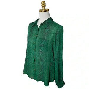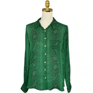 VINCE CAMUTO Women’s Green Snake Print Button Front Long Sleeve Blouse Medium