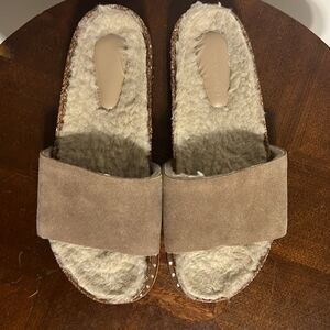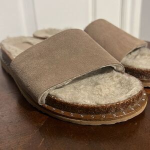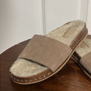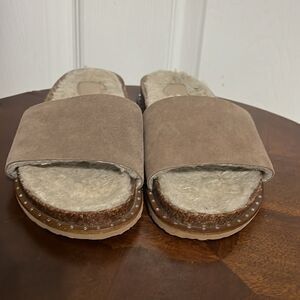 š„VINCE CAMUTO Women's Kanadial Tuscan Taupeāverona suede slides size 6.5M - GUC
