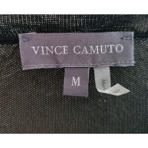 VINCE CAMUTO Women's M Sweater Black Gold Sheer Neckline & Shoulders Striped 36"