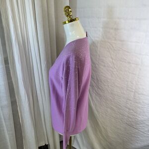 VINCE CAMUTO Women's Pink Sweater Silver Rhinestones Large Pullover Long Sleeve