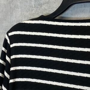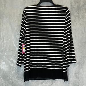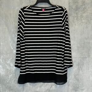 VINCE CAMUTO Women's Rich Black Striped 3/4 Sleeve Boatneck Sheer Hem Top SZ M