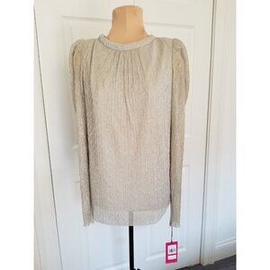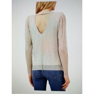 VINCE CAMUTO Women's Silver Lined V Back Shoulder Pads Long Sleeve Blouse XS